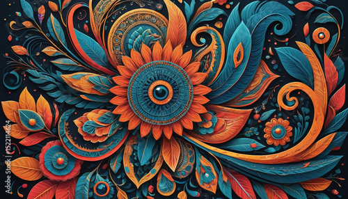 A breathtakingly detailed and vibrant illustration of creative design, executed in a mesmerizing blend of bold lines, intricate textures, and mesmerizing patterns