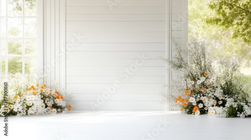 A bright, airy space with white walls, fresh flowers, and natural light