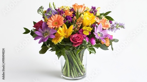A bright bouquet of mixed flowers in a glass vase, bringing color and freshness to any room