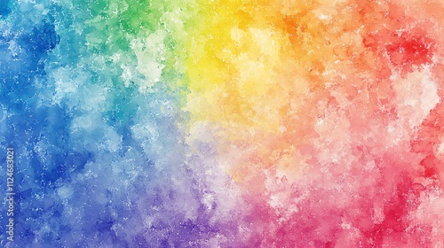 A bright, colorful watercolor background, blending from blue at the bottom to red at the top.