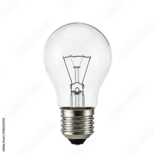 A bright glass lightbulb, an isolated electric object on white, radiates energy and symbolizes a glowing idea