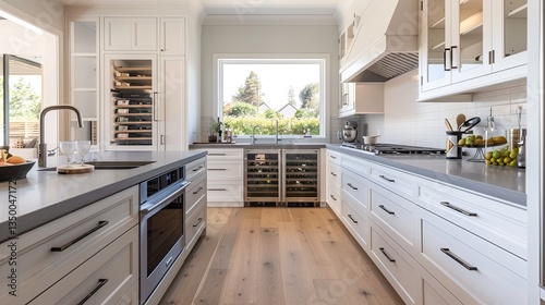 A bright kitchen featuring beautiful, modern furniture