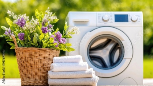 A bright laundromat filled with industrial washing machines and fresh towels ready for laundry, capturing a moment of cleanliness and efficiency