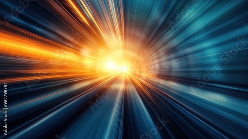 A bright orange and blue light is shining through a tunnel