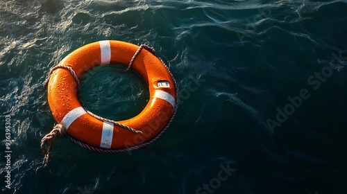 A bright orange life buoy floating serenely on calm water, symbolizing safety and rescue in aquatic environments.
