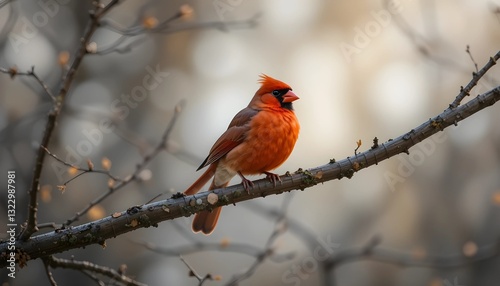 A bright red cardinal resting on a bare branch, a moment of natural beauty captured in a serene outdoor setting.