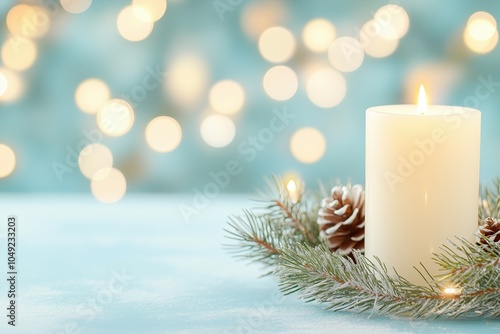 A Bright White Candle Surrounded by a Festive Wreath Creates a Cozy Christmas Atmosphere