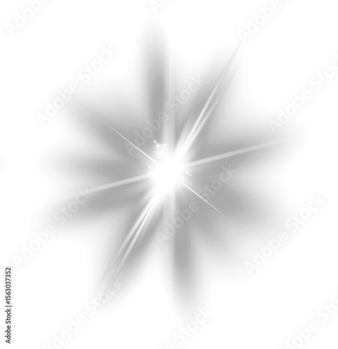 A bright white light flare on a white background