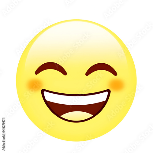 A bright yellow laughing emoji with eyes closed, expressing joy and amusement. Transparent background