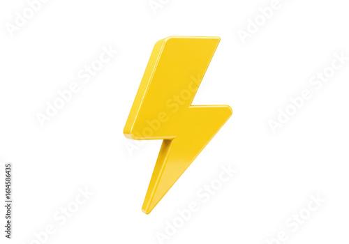 A bright yellow lightning bolt symbol, isolated on a transparent background