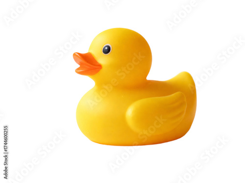 A bright yellow rubber duck designed for bath time enjoyment and playful water activities.