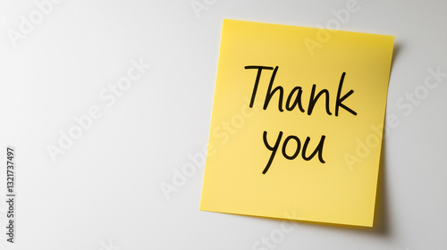 A bright yellow sticky note with Thank you written on it, symbolizing appreciation and gratitude in a minimalistic setting