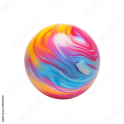 A brightly colored beach ball with glossy surface isolated on a white background