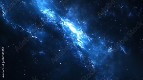 A brilliant blue galaxy nebula with numerous tiny stars shown
