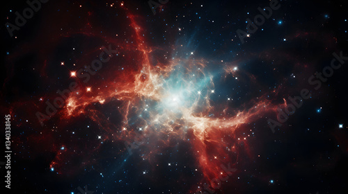 A brilliantly colored nebula in the night sky showcasing the efficiency of star formation through a spectacular display of cosmic beauty.