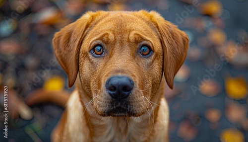 A brown dog with blue eyes looking at the camera.