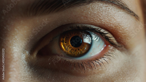 A brown eye of a woman super macro close up background.