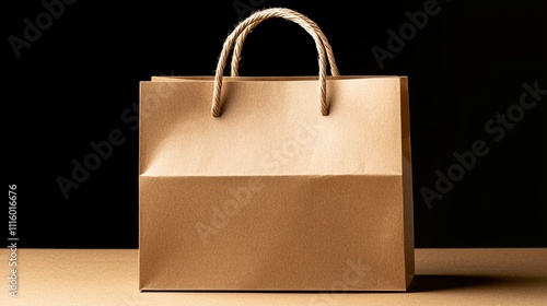 A brown paper shopping bag with a fold-over top, modern packaging design, high detail, hyperrealistic style, isolated on white background
