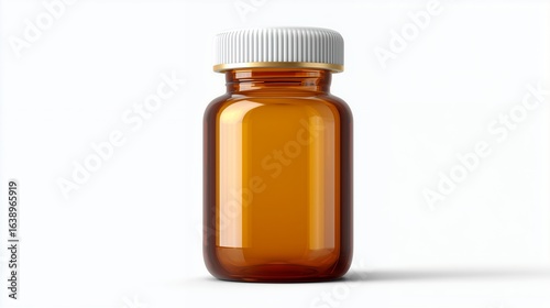 A brown plastic medicine bottle filled with pills