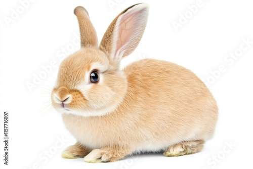 A brown rabbit sits on a white floor, perfect for illustrations and designs