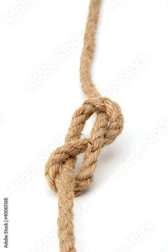 A brown rope with a knot isolated on white background