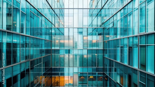 A building with a glass facade featuring an abundance of windows, a modern architectural marvel. Ai Generated