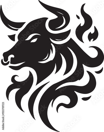 A bull head silhouette with a flame pattern in the horns vector black