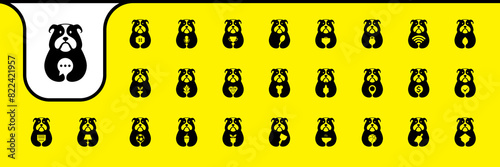 a bulldog holding, mascot character flat cartoon modern icon set collection designs