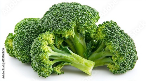 A bunch of broccoli is displayed on a white background