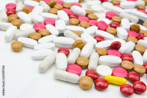 A bunch of colored tablets allopathic and Ayurvedic.Medical topic