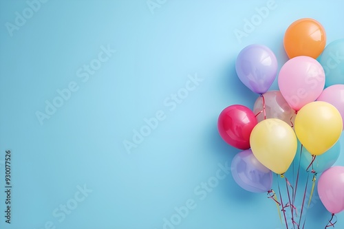 A bunch of colorful balloons on a light blue background.