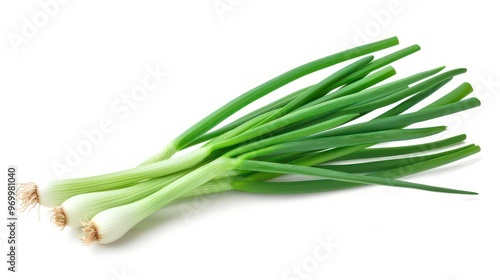 A bunch of fresh green onions on a white background.
