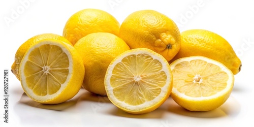 A Bunch of Lemons Cut in Half, Closeup, White Background, Yellow Citrus Fruit, lemon, fruit, citrus