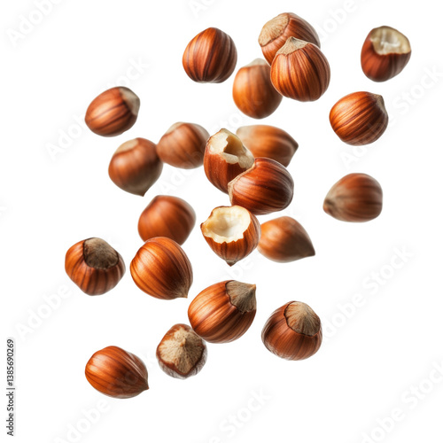 A bunch of nuts are flying through the air