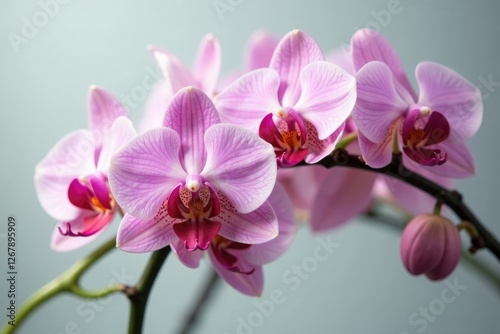 A bunch of tiny pink and white orchid flowers intertwined with delicate vines, knotted stems, flower bunches, tangled stems