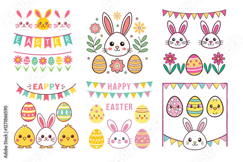 A Bundle of Cute Festive banners vector cartoon illustration Easter day