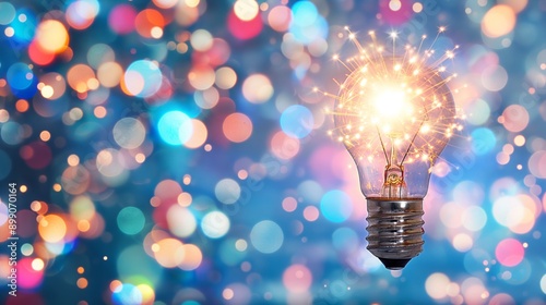 A burning light bulb with sparks emanating from it against a blurred background