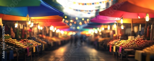 A bustling night market filled with colorful stalls and vibrant lights.