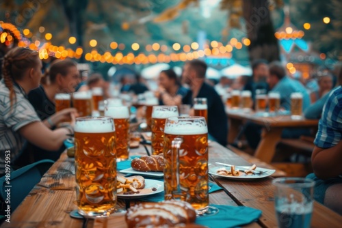a bustling Oktoberfest beer tent filled with people enjoying the festival