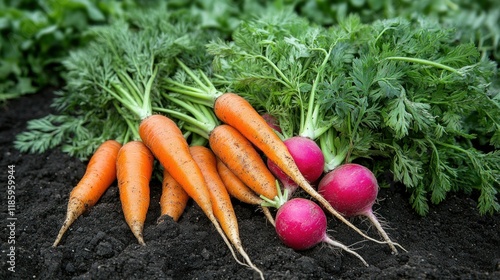A busy farmer at a roadside vegetable stand, arranging fresh produce for customers with a smile on their face
