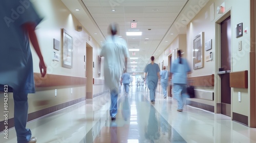 A busy hospital corridor buzzes with doctors and nurses committed to caring for patients.