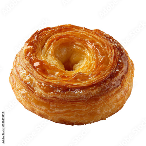 A Buttery Kouign Amann Pastry with Caramelized Surface Isolated on Transparent Background
