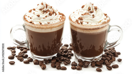a Cafe Mocha topped with a generous swirl of whipped cream, creating a perfect blend of rich coffee and chocolate flavors.