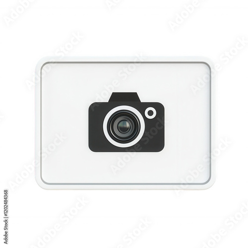 A camera icon with a lens depicted in a minimalist style, emphasizing photography and visual creativity, Transparent Background.