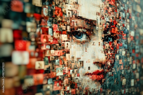 A captivating artwork composed of countless small images featuring a woman's face.