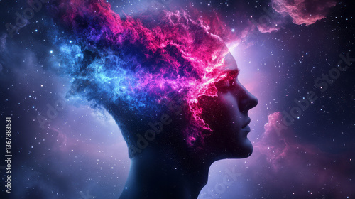 A captivating being illuminated by flowing cosmic energy, vivid red and blue veins glowing against