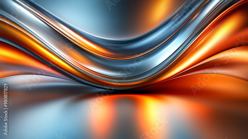 A captivating blend of metallic waves reflecting vibrant blue and orange hues, creating a dynamic and modern abstract composition.