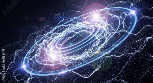 A captivating, celestial-like design featuring concentric rings of light, dotted with particles, creating an ethereal and dynamic visual effect.