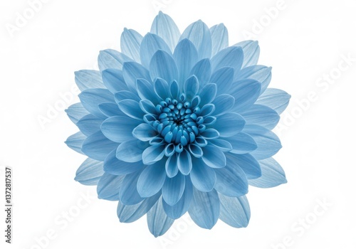 A captivating close up of a light blue dahlia flower with many petals against a white background transparent background