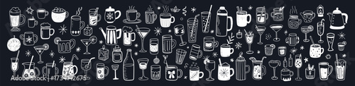 A Captivating Collection of Illustrations Featuring Various Drinks, Beverages, and Refreshing Cocktails on a Dark Background